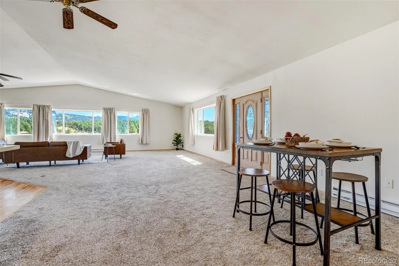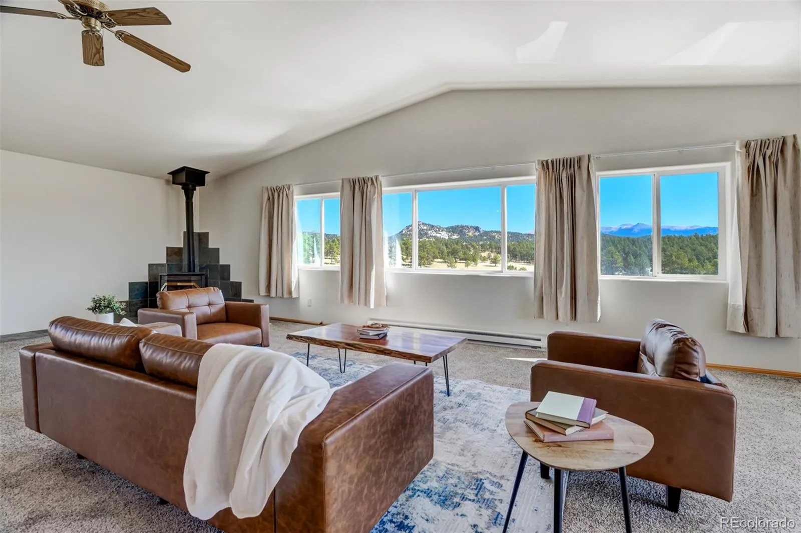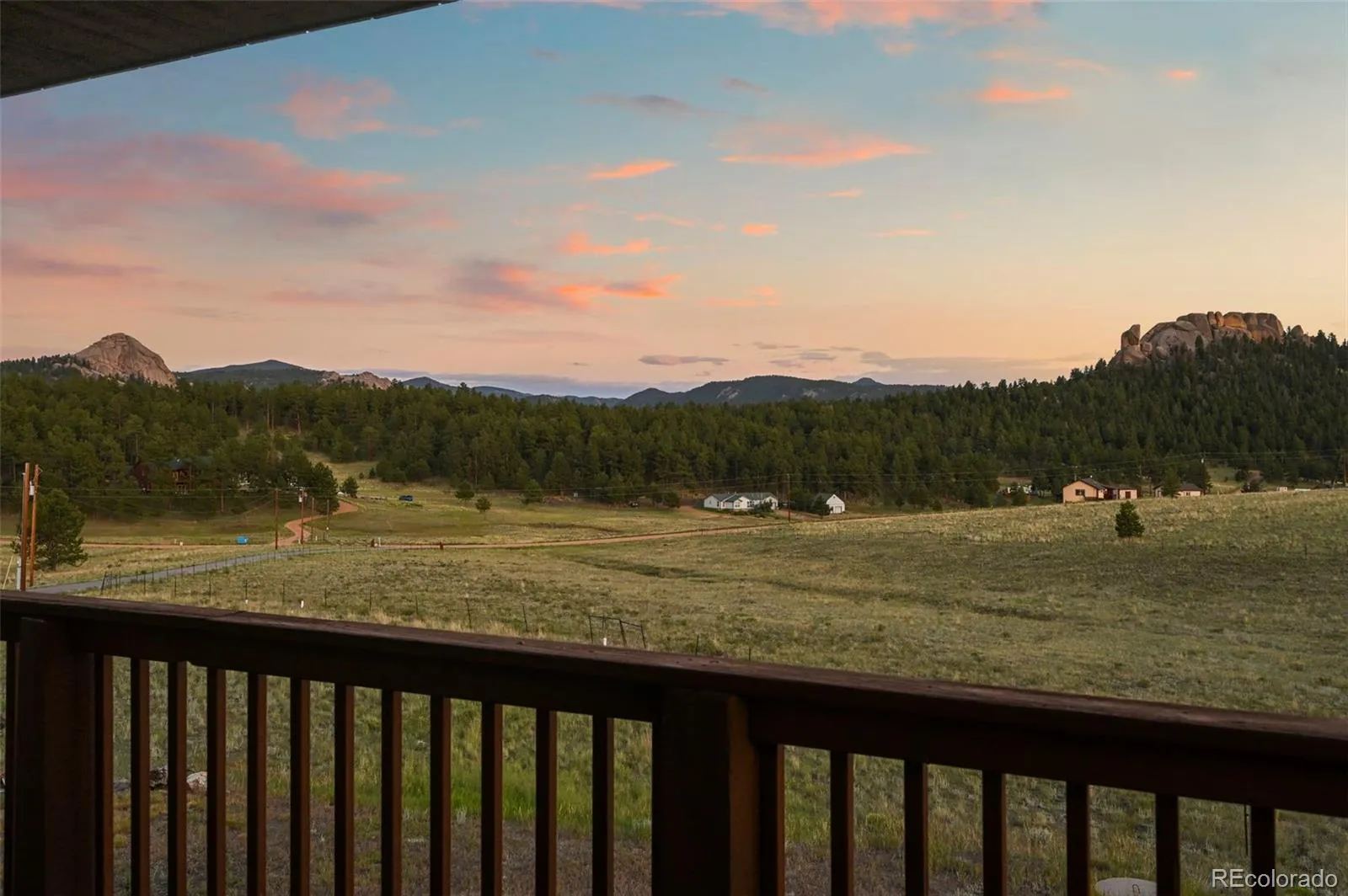 As you approach this picturesque mountain retreat, set on over 11 acres, you’ll immediately be struck by mountain views and dramatic rock formations. The large, covered front porch invites you to sit and take in the peaceful surroundings. Stepping inside, you’ll be greeted by a wall of windows in the living room, where natural light floods the space, perfectly framing the Pikes Peak view. The cozy warmth of a pellet stove creates an inviting atmosphere. As you move through the home, you’ll find the oversized master bedroom—a true retreat—with an ensuite bathroom featuring a freestanding shower and a luxurious soaking tub, where you can relax and recharge. The large kitchen, adorned with beautiful hardwood floors, provides ample space for both cooking and entertaining, with plenty of room to gather and create lasting memories. Downstairs, you’ll find a secondary living space. With it’s own separate access, full bathroom, and additional guest bedrooms, family and friends can stay with peace and privacy. Outside, you’ll discover ramp access to the upper level, making it easily accessible. The paved driveway, fabulous for snow removal, leads to a spacious 3-car attached garage, along with an additional 1-car detached garage, providing plenty of space for vehicles and storage. Two sheds offer even more room for tools, hobbies, or outdoor gear, and the fenced yard includes a dedicated dog run, perfect for your furry friends to roam freely. Classic cedar siding and a brand new roof make this home attractive and reliable. Coveted southern exposure and low utility bills! With sensible covenants, this property offers the freedom to truly make it your own. Just a short drive from Florissant Fossil Beds National Monument, it blends the peacefulness of mountain living with the convenience of nearby attractions. This isn’t just a home; it’s a lifestyle waiting to be embraced. Take a tour today and experience the mountain views and tranquility that could soon be yours!