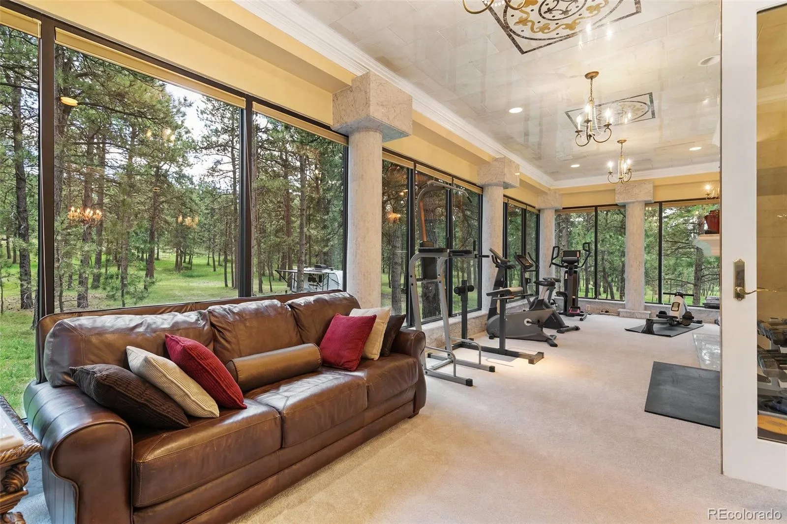 Each of the home’s generously sized bedrooms features a private en-suite bath and ample closet space. The sunroom, surrounded by tranquil forest views, offers a peaceful sanctuary for exercise, and can easily transform into a fifth bedroom or private studio. On the lower level, a private guest suite with its own bath is perfectly situated for visitors. This space is built for entertainment and connection, complete with a state-of-the-art home theater, full wet bar, and expansive game room—an ideal setting for hosting family and friends.