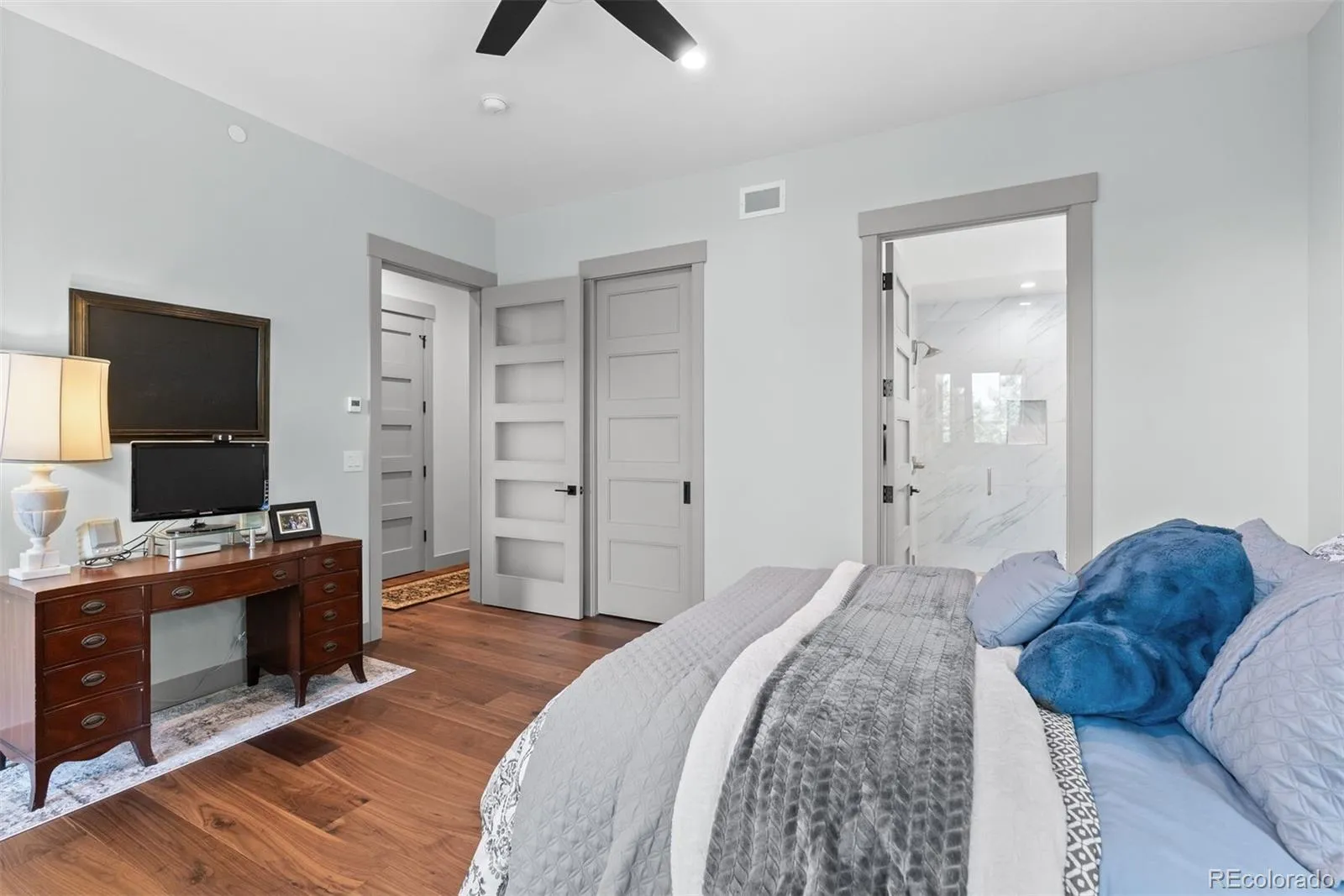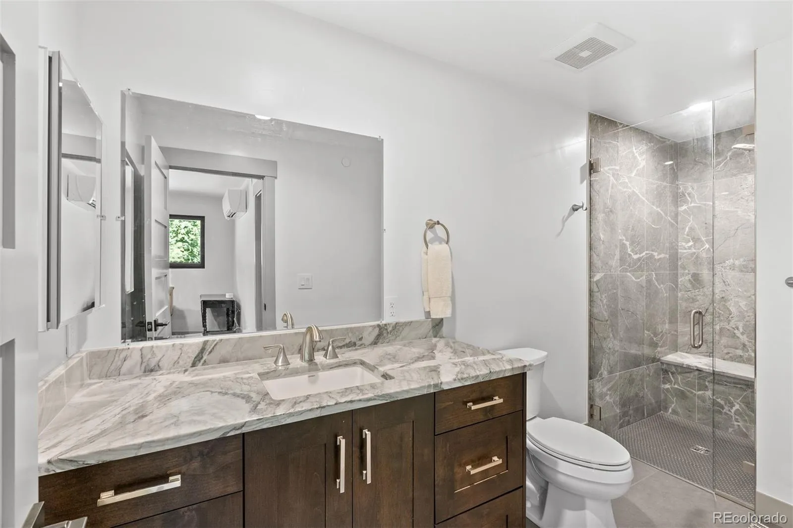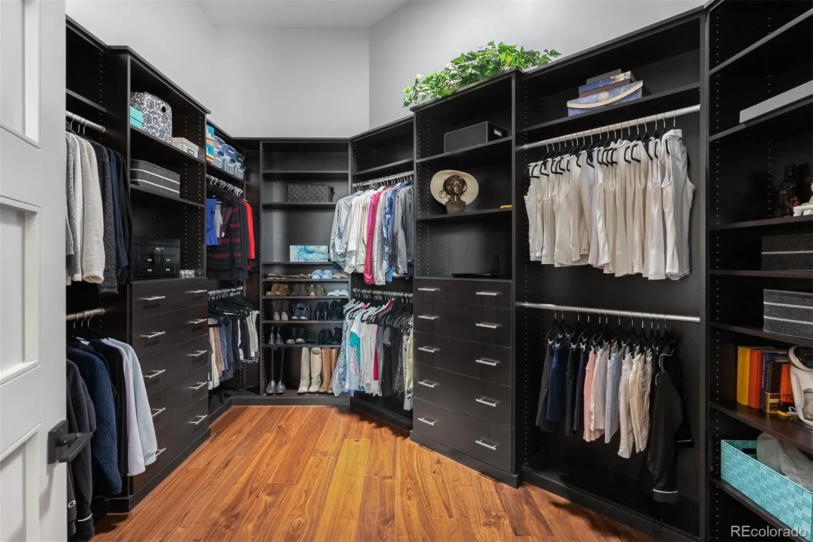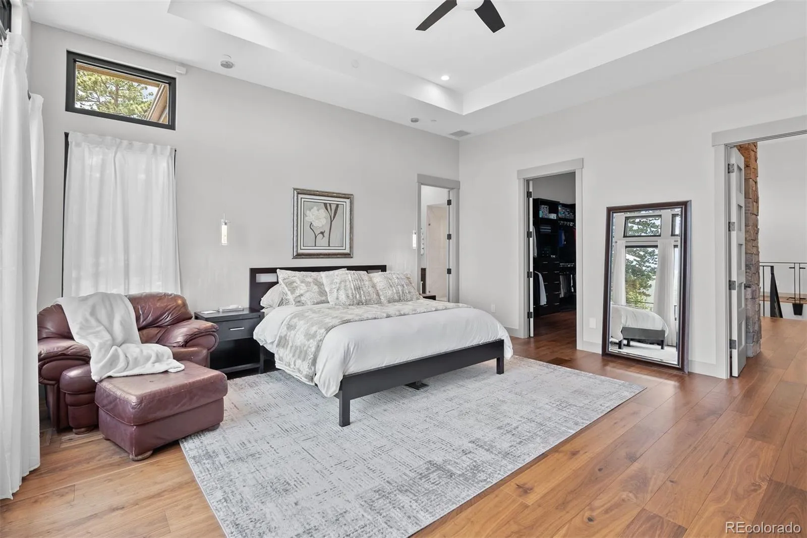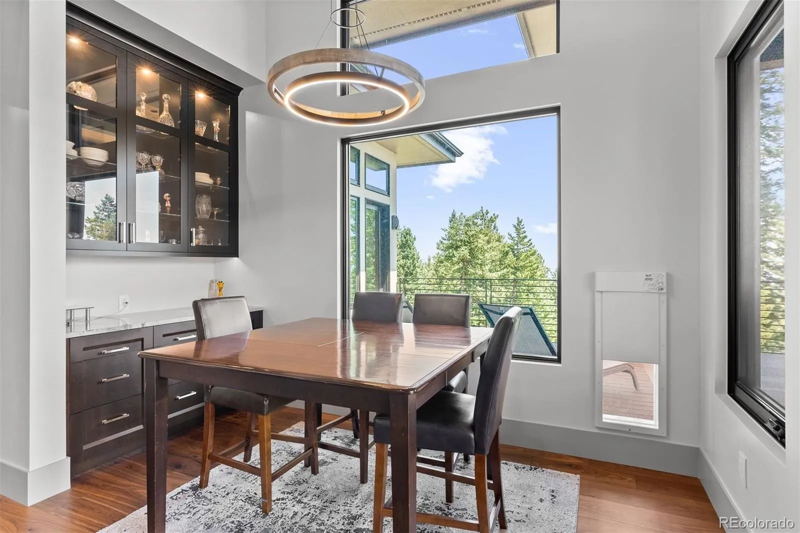 Nestled on 10 private acres, this stunning modern home perfectly marries contemporary design with the natural beauty of Evergreen. Situated at the top of a private country road, this newer construction features an open floor plan, inviting abundant natural light and creating a warm, welcoming atmosphere. As you enter, the expansive great room captivates with its impressive 20-foot wood ceilings, elegant I-beams, and automated accent lighting. Large windows and sliding glass doors open to the spacious deck and showcase breathtaking mountain views, while a striking gas fireplace with custom stonework and rolled steel surround serves as a cozy focal point. The gourmet kitchen is a chef’s dream, highlighted by a magnificent 14-foot Quartzite Island with a waterfall edge, Thermador appliances, and custom Plato cabinetry and offers the ideal space for entertaining. The luxurious main floor primary suite features a spa-like en-suite bathroom with dual Quartzite vanities and custom lighting, a soaking tub, and a glass-enclosed shower. With 5 additional bedrooms throughout the home, to include a private In-Law suite, and 2 offices, this exceptional home offers space to suite all needs. The walkout lower level enhances the home’s entertaining potential. This space features a spacious entertaining area complete with an oversized 12-foot bar topped with a stunning live edge butcher block. While a remarkable 1,400 square foot covered patio area extends the living space outdoors, perfect for enjoying the surrounding nature. With energy-efficient features, smart home technology, and impeccable craftsmanship, 1082 W Meadow Drive stands as a true sanctuary, offering the perfect blend of luxury and comfort in a breathtaking setting.
