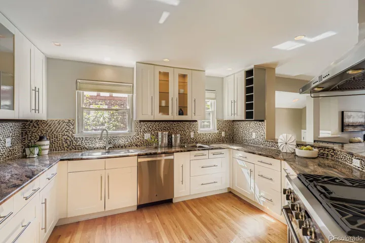 Life is lived in the details, this home captures them beautifully. Flowing like a single-family, the wide-open kitchen, living, and dining space pairs with thoughtful architectural design in a 1/2 duplex. The kitchen shines with imported stone, sleek backsplash, walk-in pantry, and luxe white-and-gold appliances.