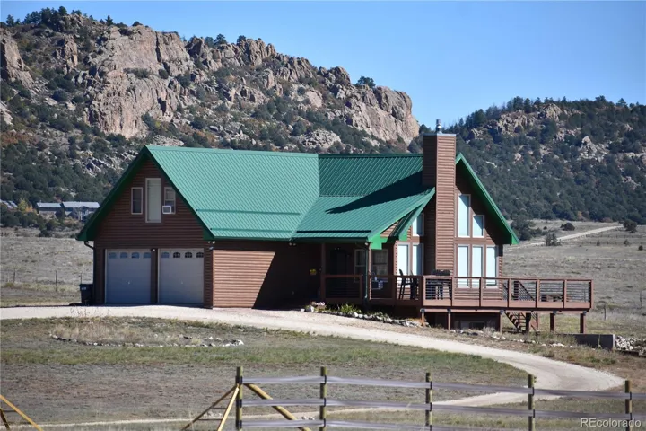 Panoramic views of the majestic Sangre De Cristos on 35 acres, this expansive log-sided home offers an unparalleled mountain retreat. 2 story windows make the home bright and the mountain views big! Offering 3 Bedrooms AND an office/4th bedroom, the open floor plan seamlessly integrates the kitchen, dining, and great room with cozy gas fireplace.